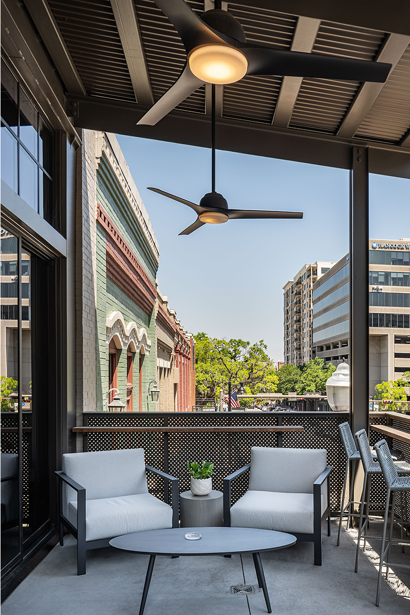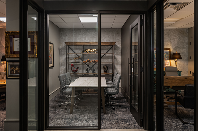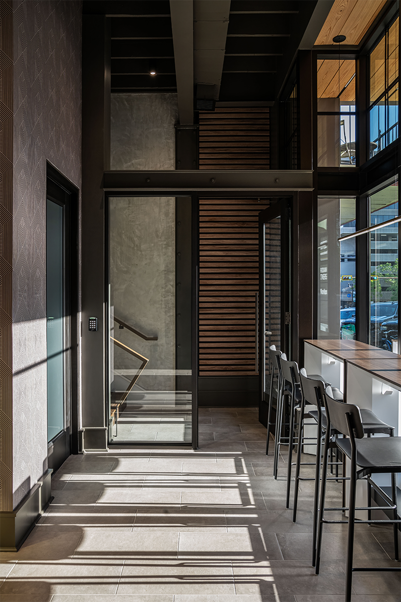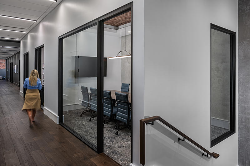 Once a 1930s cinema, the building has been thoughtfully reimagined into a modern workplace that demonstrates the power of renovation to preserve history while inspiring new life and purpose. The design honors the building’s enduring character through the careful restoration of its historic brick façade and original plasterwork, while introducing contemporary glass and metal elements that express transparency, innovation, and forward momentum. A new covered balcony extends from the second floor gathering space, activating the streetscape and reestablishing the building’s presence along South Monroe Street. Inside, the renovation reorganizes the narrow floor plan to draw natural light deep into the space, transforming what was once a dark theater into a bright, connected workplace. Glazed office fronts and refined finishes enhance openness, collaboration, and comfort, reflecting a professional ethos and commitment to excellence. Every design gesture bridges the past and present. The result is a building that celebrates its cinematic legacy while standing as a model for adaptive reuse.